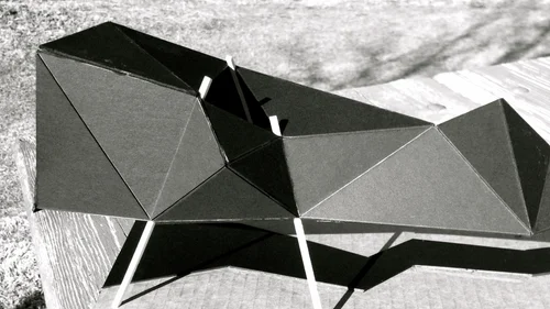 These studies from first year explore point, line, and plane as elements of spatial definition. The model above uses the elements to imagine a new enclosure for the existing spaces in OU’s architecture building.